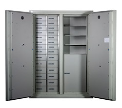 L’elevata riduzione del rischio di forzatura e del furto, si unisce al vantaggio di poter disporre di due casseforti con gestione completamente autonoma. Questa serie di casseforti sono state realizzate per rispondere ai requisiti di elevata sicurezza previsti dalla norma europea EN 1143-