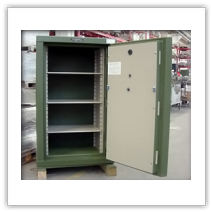 Pareti e battente di adeguato spessore prevedono l'impiego di acciai da costruzione, acciai al manganese e conglomerato ad alta resistenza. Tutte le superfici del mezzo di custodia sono omogeneamente protette con le sopra citate corazze.